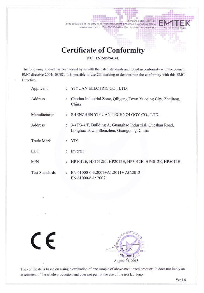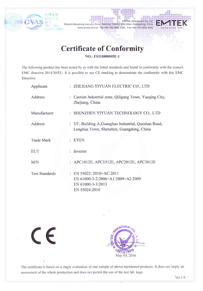 APC 12Vdc CE-EMC Certificate ES111008005E-1