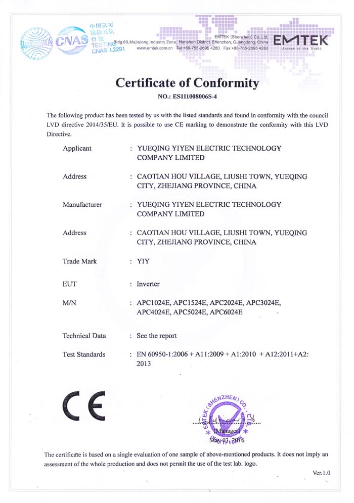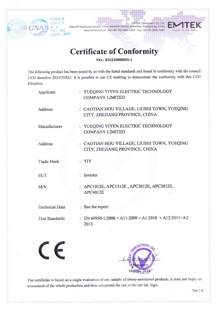 APC 24Vdc CE-LVD Certificate ES111008006S-4