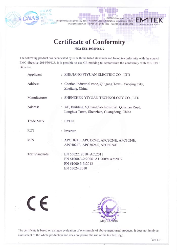APC 24Vdc CE-EMC Certificate ES111008006S-1