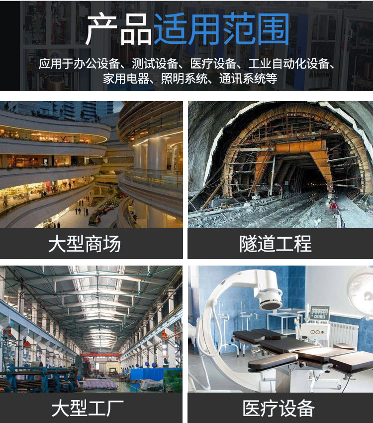 該系列穩壓器已被廣泛運用于工礦企業、郵電、鐵路、建筑工地、學校、醫院、賓館、國防、科研等部門的電子計算機、精密機床、精密儀器、實驗裝置、電梯及生產流水線的電源穩壓中。同時也適用于電源電壓低、波動幅度大的低壓配電終端用戶及負載變動較大的用電設備,如升降機、起重機、攪拌機等一切需要電壓穩定的場所。